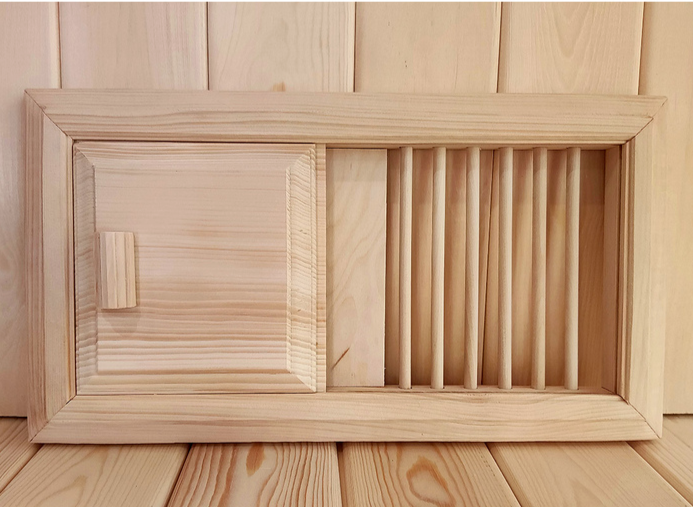 Вентиляционная заслонка для бани послужит отличным решением для вентиляции и интерьера вашей бани или сауны. Изделие изготовлено из кедра высшей категории. Кедр благородное дерево,оно не выделяет смолу и служит хозяину долгие десятилетия. Радуя глаз своим эстетическим видом и приятным запахом древесины.