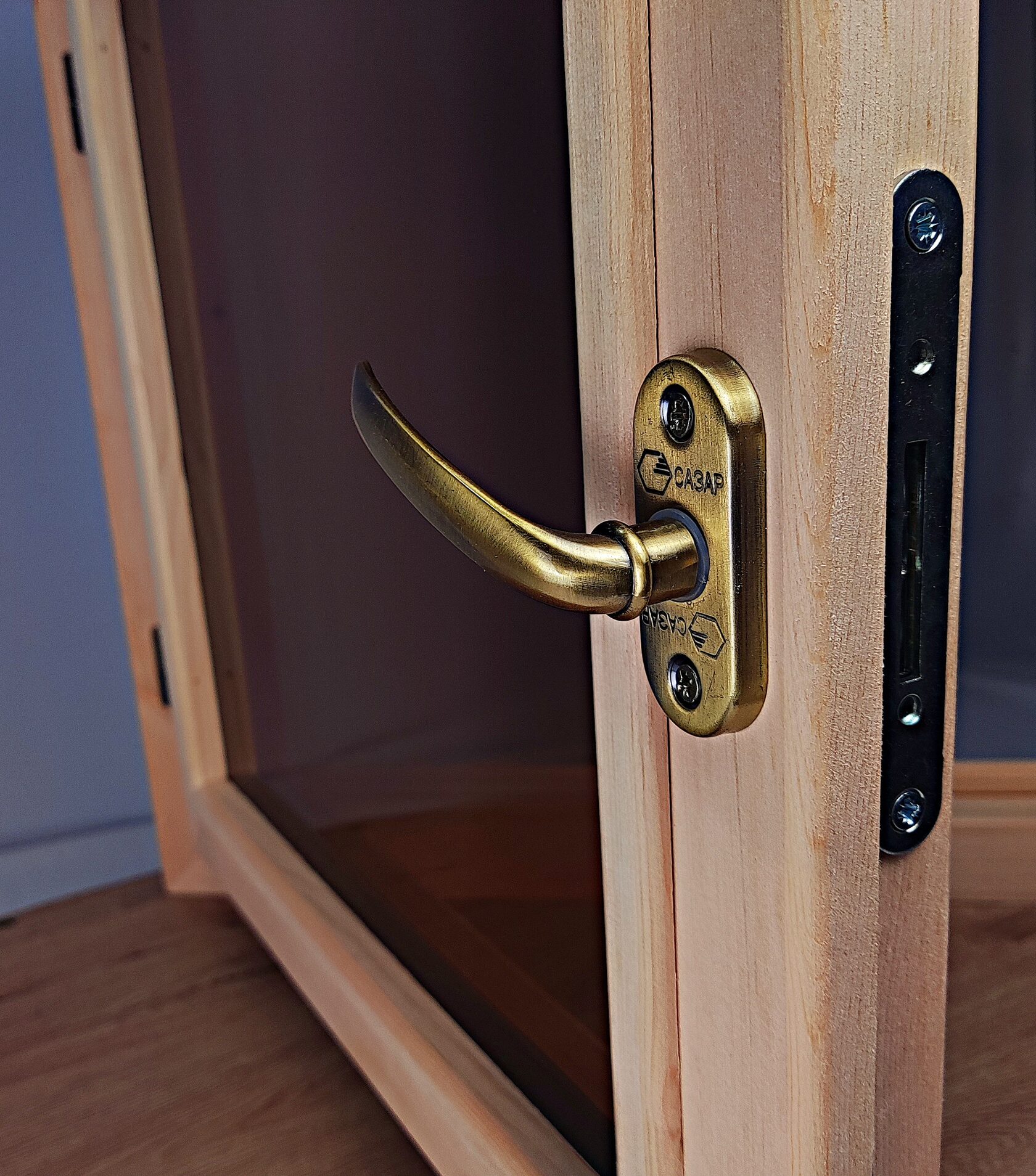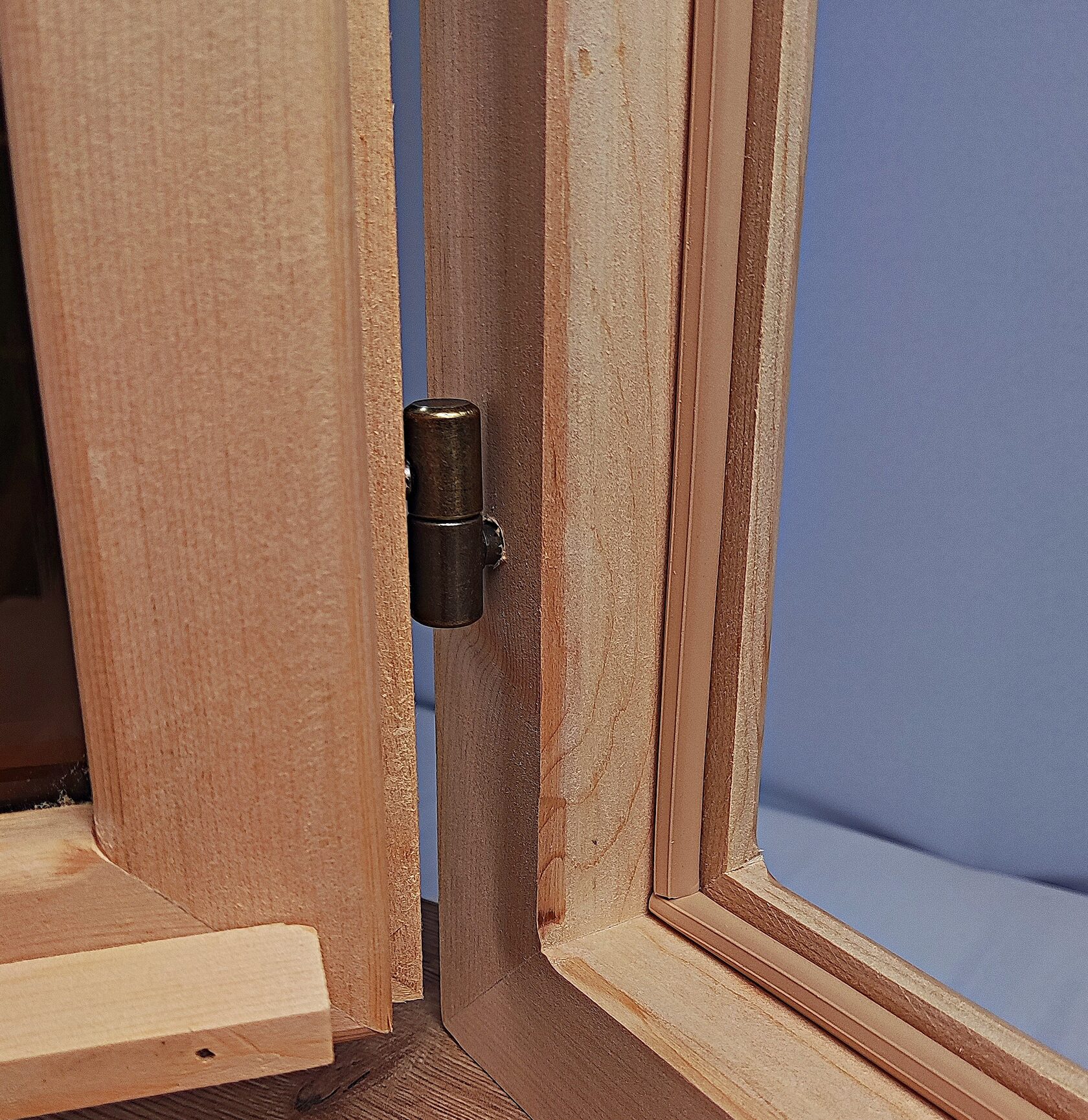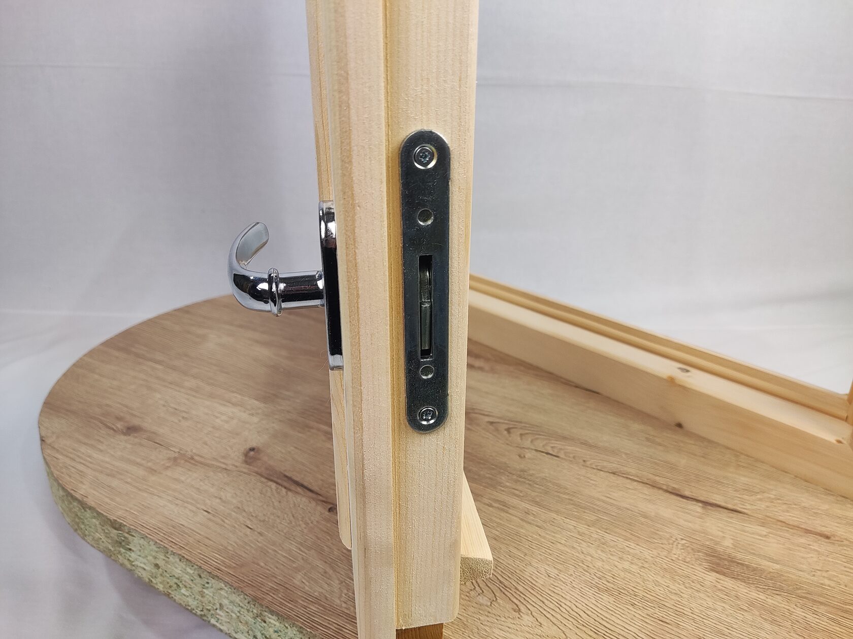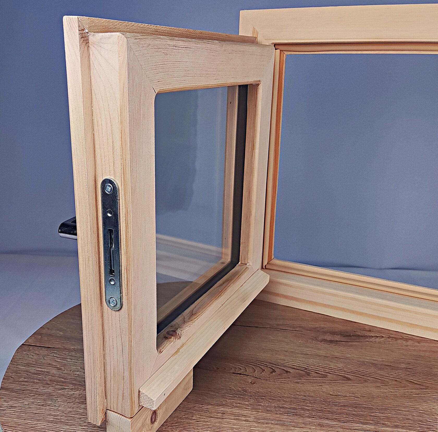 Качественная и стильная фурнитура. В комплекте ручки, навесы, замок. Окно сразу готово к пропитке и установке.