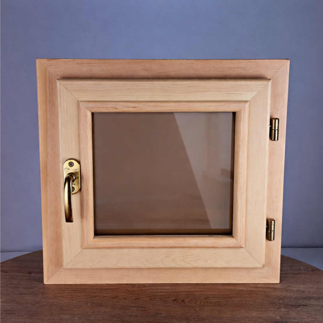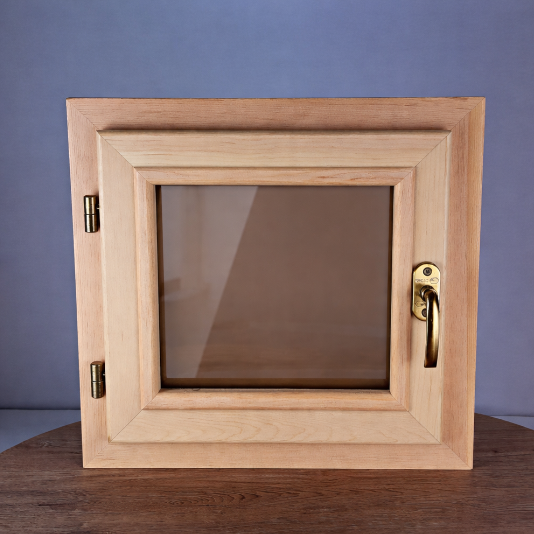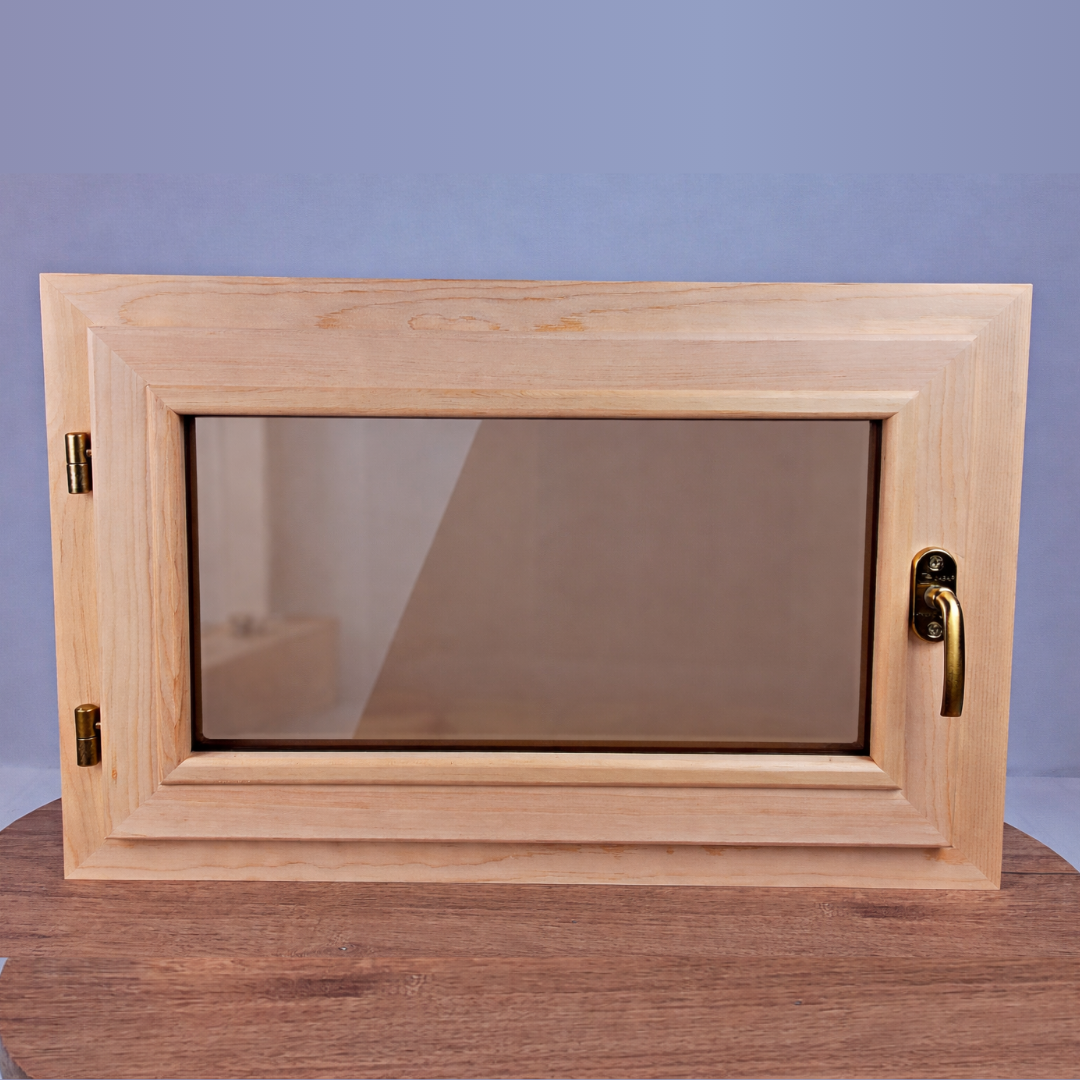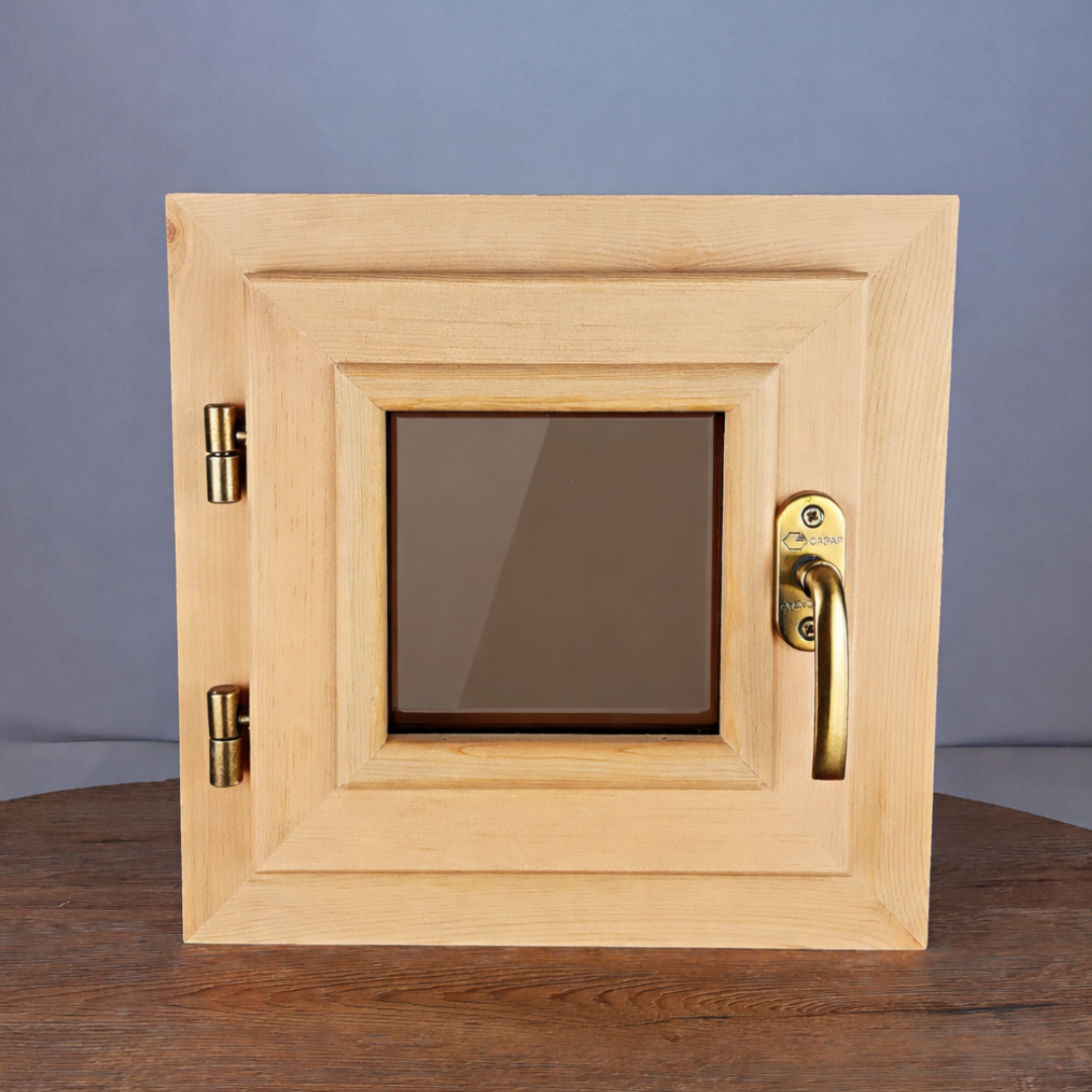 Качественно изготовленное окно из кедра. Подойдет для установки в парилку, сауну, дом. Окно имеет одинарный стеклопакет (2 стекла). Теплосберегающий стеклопакет на металлической вставки с прорезиновой оправой. По контуру внутреннего блока установлен бежевый термовлагостойкий уплотнитель (выдерживает до 250 градусов). На оконной раме предусмотрен капельник - это отлив предотвращающий прямое попадание от осадков во внутреннюю часть рамы.